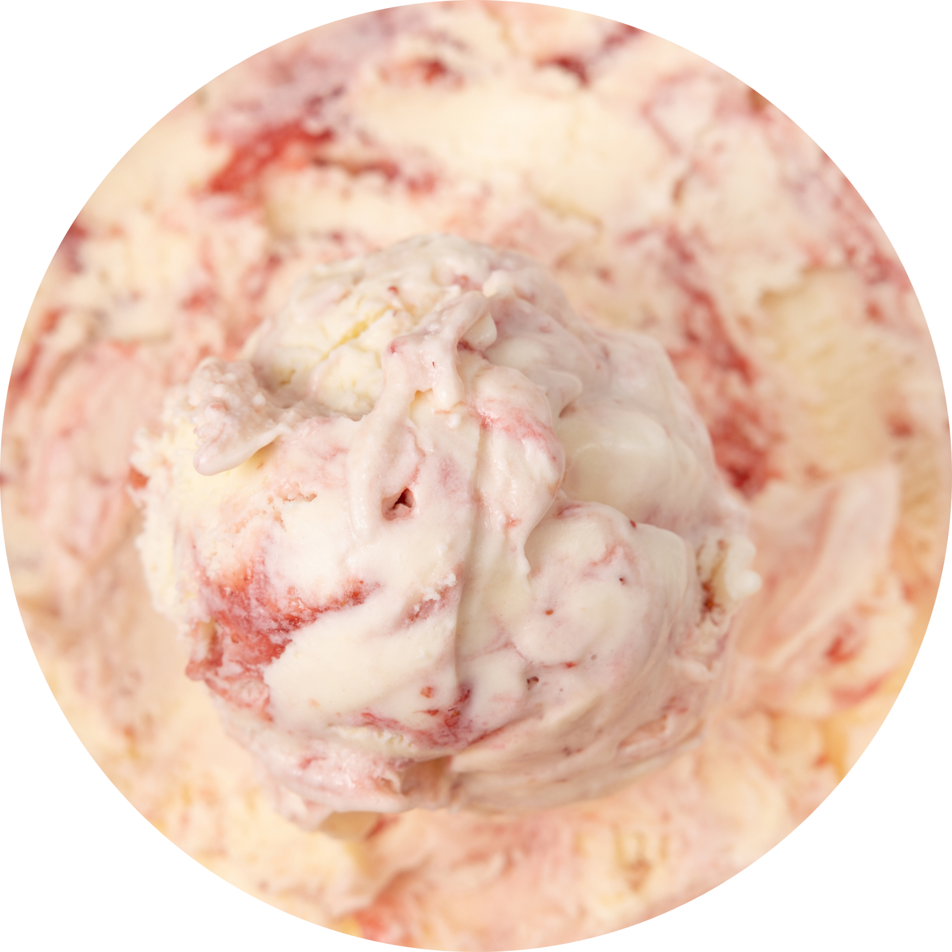 A rich and milky sweet cream ice cream paired with swirls of locally handpicked strawberries from BC.